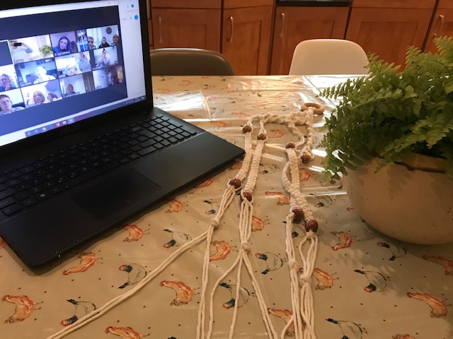 Over this lockdown period of the Coronavirus my wonderful church community, New Life Church Letchworth, has been finding creative ways to connect with each other whilst not able to be together in person. A beautiful group of women got together for an on-line Macramé tutorial over Zoom. The host of the meeting sourced the Macramé string with beads and out it all together in a little craft bag with some demonstrations of the knots. We then had to arrange a social distancing collection of the kit in time for the meeting in exchange for the £3 to cover the materials. We then were given the Zoom meeting code to join in the fun and learn and be creative together.
