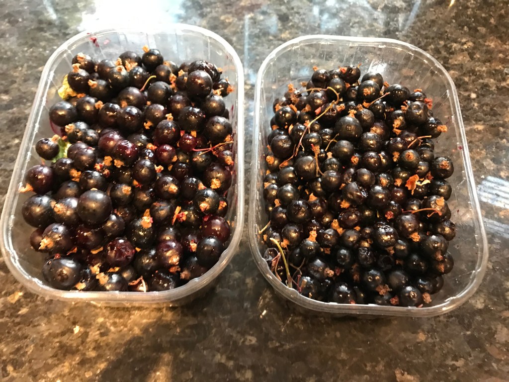 I’ve recently discovered that the reason they are hard to buy in supermarkets is that 90% of the blackcurrants grown in the UK end up up making Ribena. They are a source in vitamin C making it ideal as a fruit cordial. The tart flavour however, means that lots of sugar need to be added to make them actually edible or made into a drink and hence why they are not always a popular off the shelf supermarket choice as they are not edible as they are. It is best to look out for them in farm shops from the end of July to the middle of August. It is also an eco choice to support these businesses and shop locally where you can too, reducing food air miles and supporting the smaller retailers.
