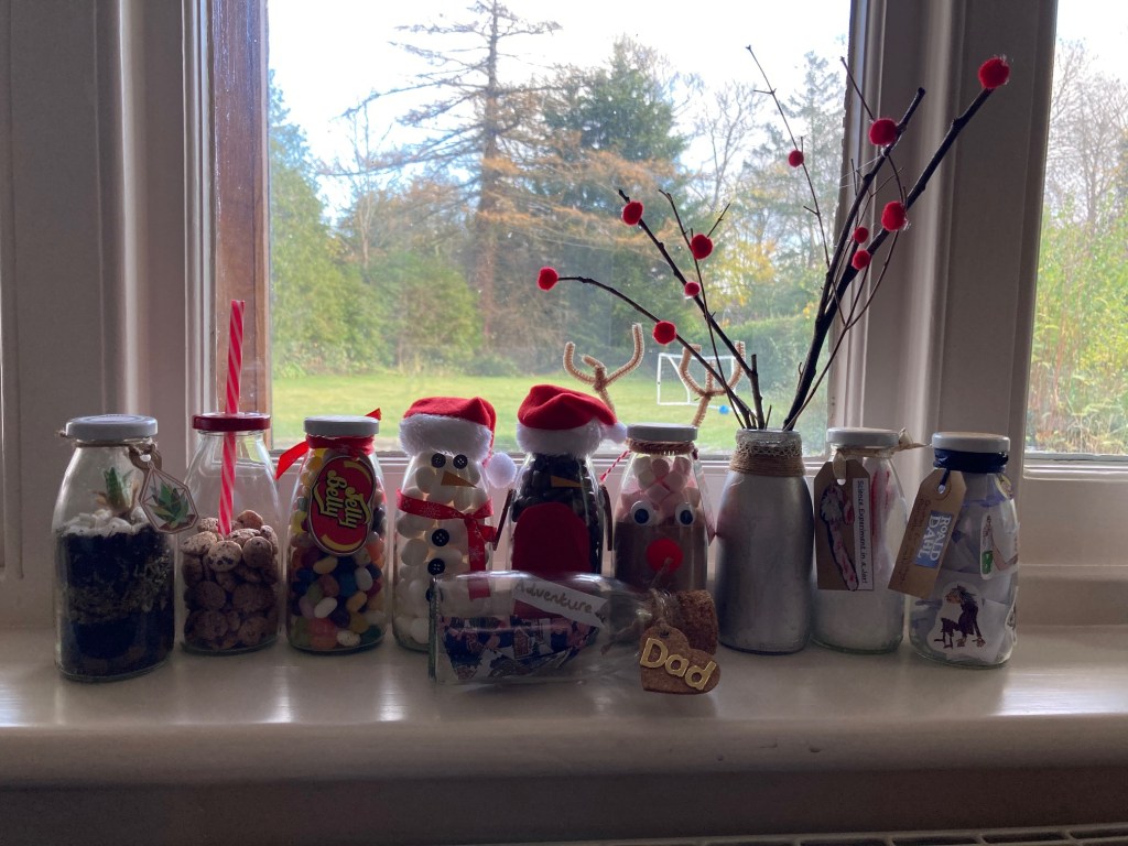 I’ve had quite a lot of fun with the Eco Gift ideas for this post. From the success of the various things I have done before using Mason Jars, posts on Lace Jar Medely and Cookies in a Jar, I decided to come up with ‘8 ways to gift a milk bottle’ for some Eco inspiration for using Eco- friendly recyclable glass milk bottles.