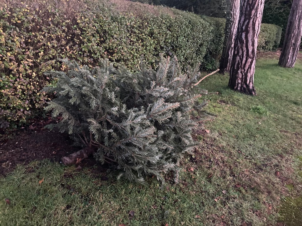 Alternatively, most local councils will collect the trees if you pay for garden waste pick up. Our local council will take it on a the normal garden bin day and the tree will eventually be turned into nutritious soil conditioner along with the other garden waste.