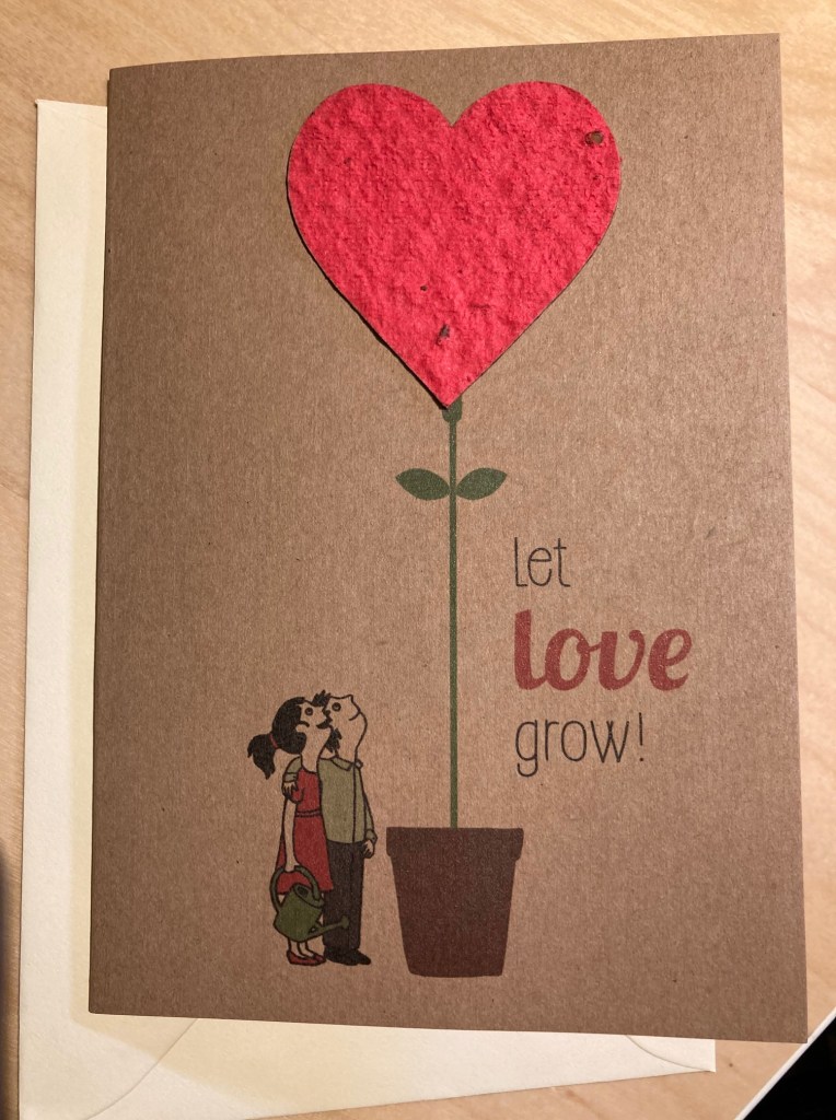 When looking for a Valentine’s Day card this year, I came across this super cute card with the words ‘Let love grow’! . The heart is detachable, made from eco seed paper which can be planted afterwards and grows into beautiful flowers. It would make a lovely wedding favor or I’ve used the idea before to make an eco gift tags. When planting seeds is not an instant result, it takes time and care, watering, patience and kindness.