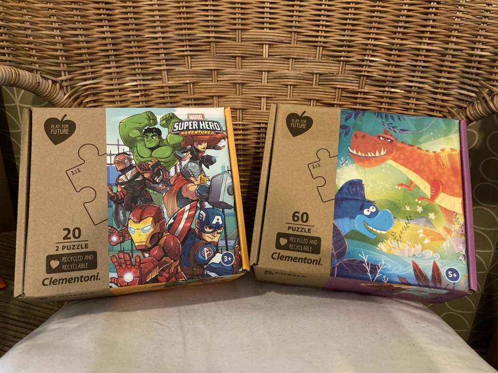 When I was in my favourite shop Hobbycraft this week, I picked up a couple of recycled and recyclable puzzles by Clemontoni. They will go away in a present cupboard for when we next need a birthday gift (that’s if my 4 year old doesn’t spot them first as he loves a good puzzle). The way the cupboard works in our house is that I top it up as and when I see things I feel are appropriately eco and then my children get to choose a gift for their friend from what is in the box. This empowers them to make a choice from an already pre- selected gifts and avoids having to take them to a shop and the pester power that they all know how to use.